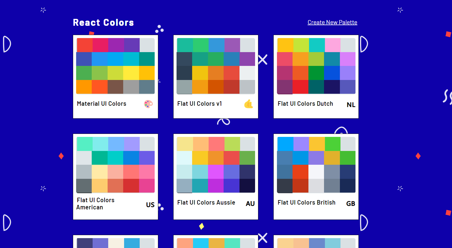 Vivid UI features 13 more color palettes.You can create your own color palettes, copy their hex , rgba,hsl codes and also generate different shades of same color.