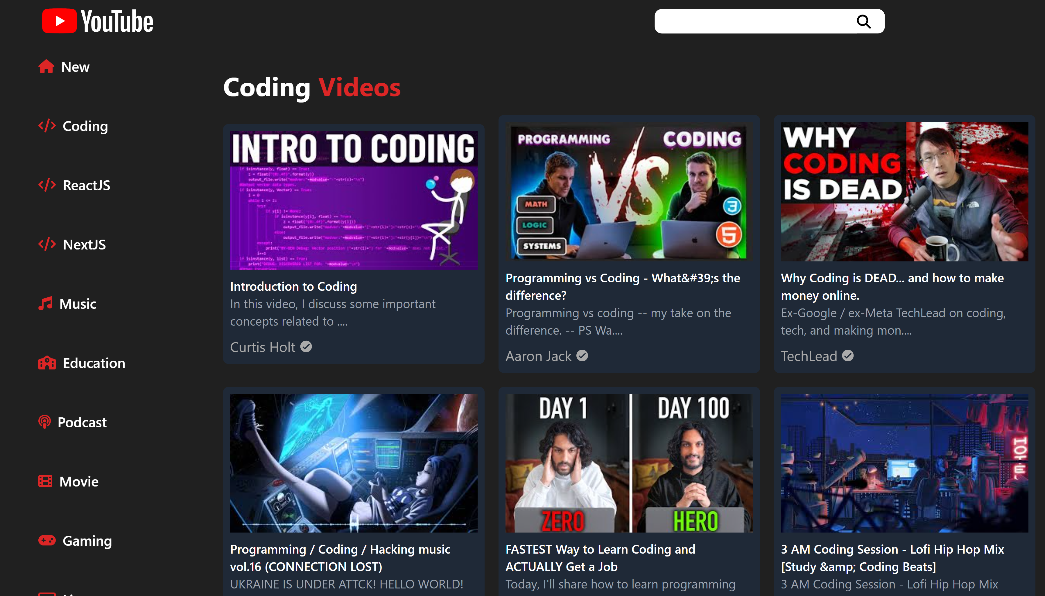 It is the Clone of Youtube.com. It is made using React.js and Material UI. User can Watch & search the videos.It is a fully responsive website.